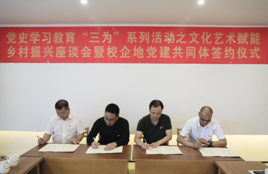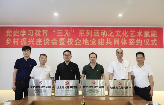 2021年10月中旬,在前期的良好工作基础上,浙江传媒学院组织部党支部、浙江传媒学院设计艺术学院党委和浙江子久文化股份有限公司党支部、温州平阳县水头镇新联村党支部签订协议结成校企地“党建共同体”,秉承“党建引领,服务发展”的宗旨,三方坚持“党建共融、资源共享、人才共育、发展共赢”的原则,共同建强组织阵地,高质量推动共建党组织引领发展,高质量开展党员学习教育,深入开展“理论联学、艺术联攻、人才联育、文化联建、品牌联创”等合作共建,以党建为引领,以共建为契机,以文化艺术赋能,立足各自资源优势与发展需求,全面深入合作,协同破解高校、地方和企业基层党建工作的难点和问题,努力形成党建工作新格局,促建乡村振兴。