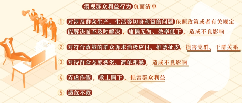 《条例》第一百二十六条、第一百二十七条对漠视群众利益行为列出负面清单,作出处分规定。