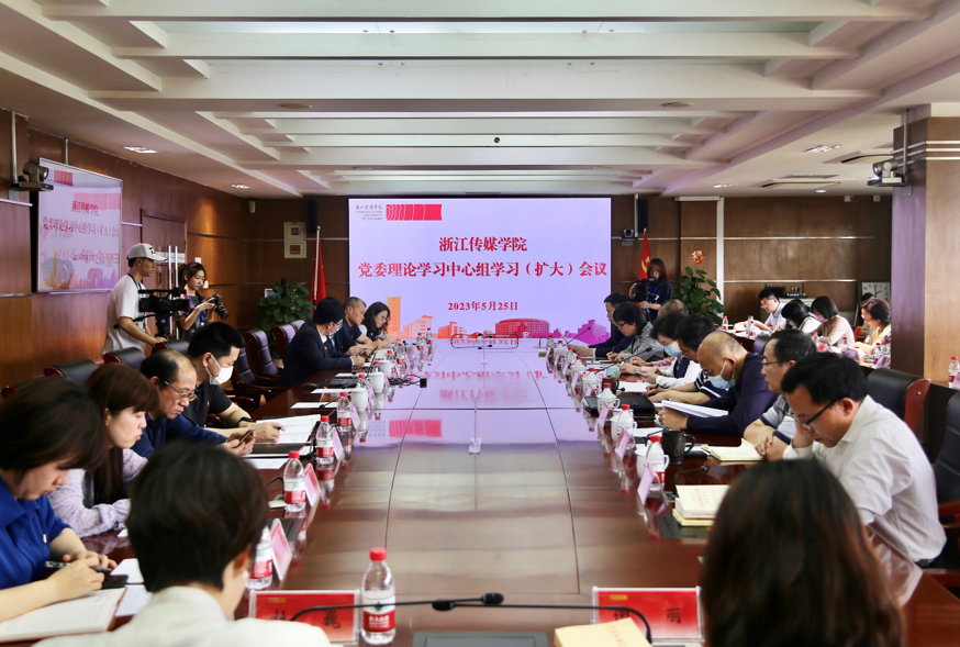 5月25日,浙江传媒学院党委理论学习中心组举行学习(扩大)会议,专题学习《习近平新时代中国特色社会主义思想专题摘编》。会议邀请中国社会科学院中国社会科学出版社党委书记、社长赵剑英作辅导报告。校党委书记杨立平主持会议。校党委理论学习中心组成员、各二级党组织书记参加会议。
