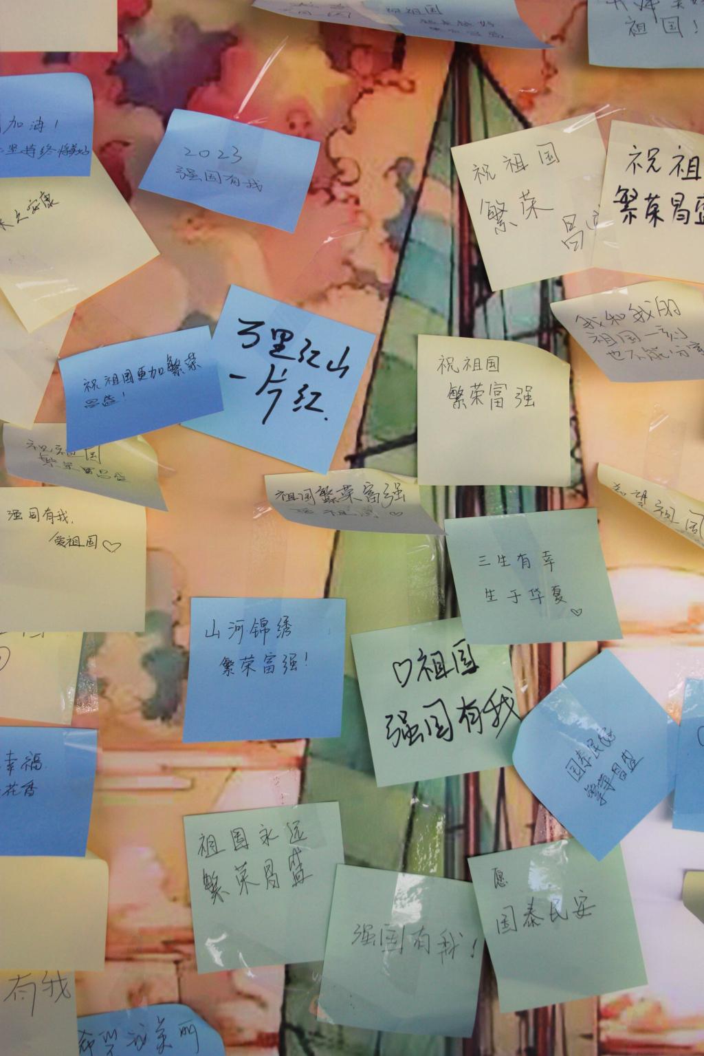 参与同学用一张张便利贴,传递他们对党和国家美好未来的祝福与期待。被贴纸满满覆盖的海报板展现了新时代媒工学子真心爱党、坚定护党、全力兴党的信念以及“强国有我”的坚定决心,鼓舞着每一位学生党员、入党积极分子坚定理想信念、扎实学业本领,为绘就新时代伟大蓝图不懈努力。