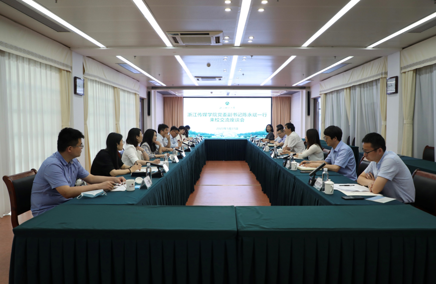 陈永斌表示,浙江师范大学作为浙江省首批重点建设高校,综合实力、核心竞争力和社会影响力逐年提升,在人才培养、学科建设、思政教育教学等方面成绩斐然,非常值得借鉴和学习。他介绍了我校近年来在思政教育教学改革、文化品牌培育、媒体融合发展等方面的工作。他希望两校进一步深化交流合作,不断推动学校思政教育和宣传文化工作高质量发展。