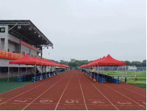招聘会前,后勤桐乡校区的物业师傅们提前进行场地布置,在操场上将桌椅摆放到位,搭好帐篷并用沙袋压牢,总计摆放了400张桌子和近1500张塑料凳;电工师傅们将线路接线,确保招聘期间用电供应充足;保洁师傅们提前将洗干净的10多个垃圾桶放置好,对场地进行全面卫生清扫,确保场地干净整洁。