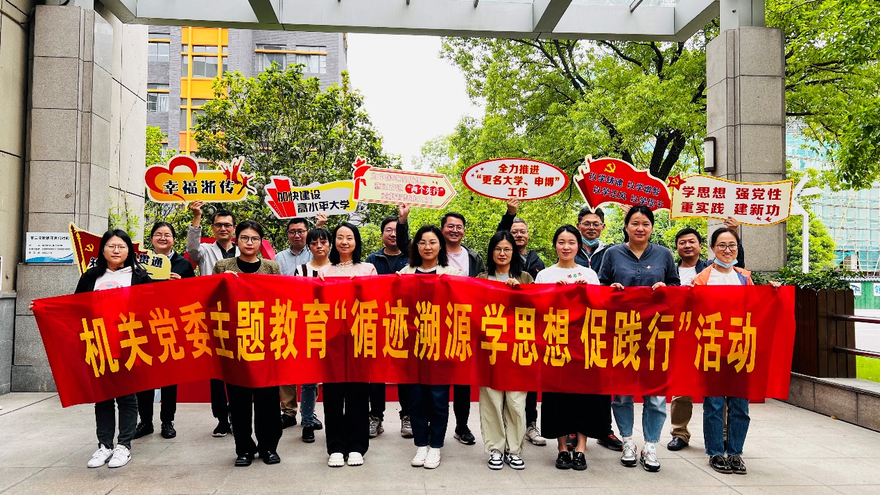 机关党委副书记和机关党员同志们一起沿着习近平总书记在浙传考察的足迹,重温习近平总书记2004年对学校提出的“紧跟时代、突出特色”重要办学指示精神,感悟真理伟力,将主题教育走深走实。