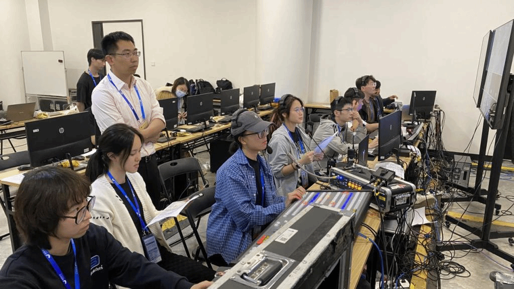 本次亚运会电子竞技测试赛事的直播服务成功承接是4月份校党委副书记徐伟标、学院姜武书记一行到中国杭州电竞中心进行服务亚运专项调研的重要实践成果,是浙江传媒学院与中国杭州电竞中心在技术服务、人才输送和产教融合等多领域开展深度合作的阶段性成果,更是我校从18年以来组建4K电竞综合实验室师生团队服务社会的标志性成果,能够充分发挥了媒体工程学院4K电竞综合实验室师生团队在电竞赛事转直播的丰富经验和技术储备优势,为亚运会电竞赛事提供了有力的技术保障服务,践行了传媒人的使命和担当。在本次“韵味杭州”动感地带杯电子竞技全国邀请赛中,我院4K电竞综合实验室团队共24人在姜燕冰副院长的带领下参与负责整体赛事的转播服务,包括王者荣耀亚运版、DOTA 2、街霸5、和平精英亚运版、梦三国2、FIFA Online4、英雄联盟7个项目,保证赛事转播有条不紊地顺利进行。