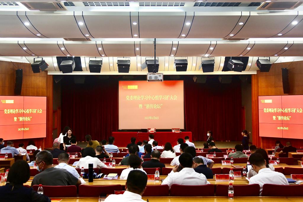 6月6日,浙江传媒学院党委理论学习中心组举行学习(扩大)会议暨“浙传论坛”,专题学习“习近平总书记关于数字经济和科技创新的重要论述”“《论科技自立自强》”。会议邀请浙江省科技信息研究院副院长段姗作辅导报告。校党委副书记徐伟标主持会议,校党委理论学习中心组成员、各二级党组织书记和全体中层干部参加会议。