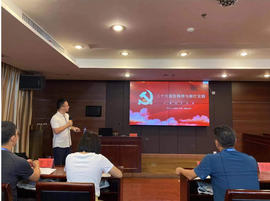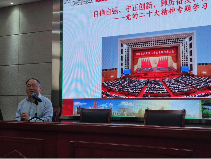 党总支书记、院长刘福州教授先后应邀为中国计量大学人文与外语学院全体师生党员、浙江金融职业技术学院党校发展对象学员、阳江市交通投资集团中层干部作党的二十大精神专题辅导报告,应邀为杭州市水务集团中层干部、桐乡市专职文化管理员培训班讲授《新时代我国意识形态领域面临的新问题新挑战及其应对》等。