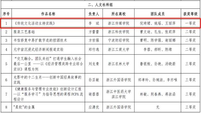 近日,浙江省第三届高校教师教学创新大赛实验技能专项赛落下帷幕。我校播音主持艺术学院李斌老师(团队)从122名参加省赛的教师团队中脱颖而出,荣获全省人文社科组唯一的一等奖(第一名)。我校获优秀组织奖。