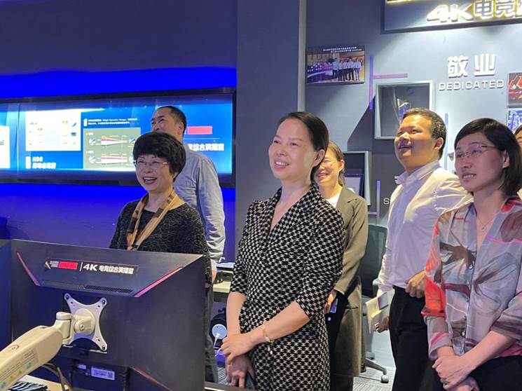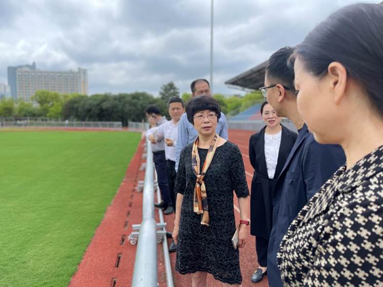 会前,宋剑波一行实地走访了学校4K电竞综合实验室和亚运会训练场馆足球场。