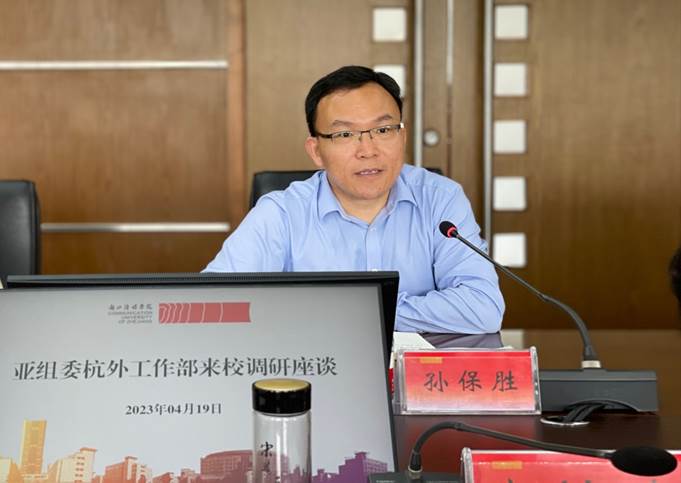 孙保胜介绍了我校亚运会相关服务工作开展情况,他表示,我校高度重视杭州亚运会各项服务工作,将尽善尽美、尽心尽力保障相关工作有序推进,为亚运会提供有力支持。