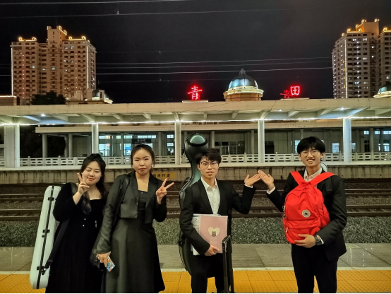 参演师生作为音乐学院艺术团器乐艺术团成员,以弦乐四重奏组形式参与过多场演出,包括凤凰湖音乐节、钱君陶纪念馆活动、MV 江南濮家发布会、浙传桐乡校区清风广场揭牌仪式等活动,具有丰富的舞台经验,但是像本次与朗诵者合作、以及快闪的形式,还是第一次尝试。同学们觉得这种尝试很新颖,也乐在其中。特别是在快闪演出中,面对观众的镜头,完全没有了以前的紧张感,很自然地和观众们分享着音乐的美好。本次青田之行,同学们感觉收获很大,从排练、彩排、演出都认真投入,在舞台上磨练自己的专业本领,在舞台外也能展示出自己的风采。