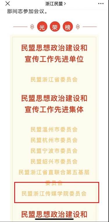 民盟浙传委员会自2021年由支部升级为基层委员会以来,积极响应民盟浙江省委会和学校党委号召,在主委葛继宏教授带领下,支部全体盟员同心同德同向发力,在资政建言、服务社会等方面卓有成果,彰显了我校统战工作的同心力量。
