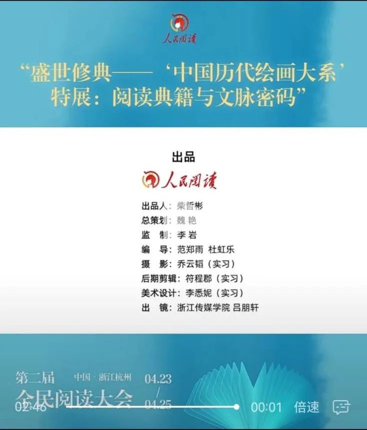 在国家重大文化工程“中国历代绘画大系”特展工作中,“时代金话筒”宣讲团师生负责“盛世修典——中国历代绘画大系特展”讲解工作,中宣部部长李书磊、省委书记易炼红等出席了活动,活动得到了中央及省市媒体的广泛报道和高度评价,“人民阅读”、Z视介等新媒体平台进行了现场直播。学院还与浙江大学、浙江广电集团联合出品了《读画--“00后”讲解员说“大系”》短视频,播放量突破500万,圈粉无数。