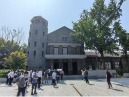 在复建的1921火车站站房,墙体上1921块“建党百年”红色纪念砖和2021块“建党百年”青色纪念砖寓意建党百年,全体人员重温了一大会议移址嘉兴的历史,见证了中国共产党的诞生和中国革命的出发点。沿着一大代表们走过的路线,来到修缮后的1937年重建的火车站站房,现在作为爱国主义和革命历史主题教育展馆,展示了一条铁路见证嘉兴百年历史的变迁史。