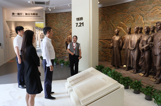 5月15日上午,徐小洲来到中共浙江省一大纪念园、凤卧镇凤卧湾村、怀溪镇石城村开展“红色引领乡村共富”主题教育调研。在调研过程中,徐小洲表示,平阳有以中共浙江省一大纪念园为代表的丰富红色旅游资源,在全省乃至全国都具有一定影响力,要更好激活红色资源的巨大潜能,有效带动平阳农产业特色村的发展,浙江传媒学院将发挥学科专业优势,把文化艺术赋能新联村的成功经验推广到平阳更多产业特色村。