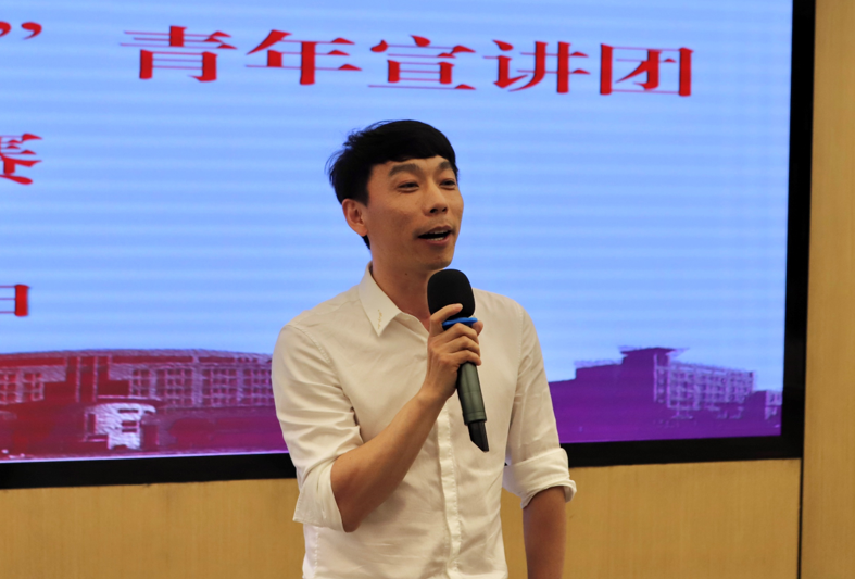 “红·传”青年宣讲团导师、新闻与传播学院副教授、硕士生导师焦俊波作题为《党课&演讲:如何讲好一个主题故事》的培训,他将演讲、微党课视频案例和自身参加全省微党课大赛经历结合起来,指导团员们如何讲好一个主题故事。他表示,要在宣讲过程中“增强对象感”,将党课故事和受众互相关联,由点到面,通过细节将内容生动形象地传递给受众。