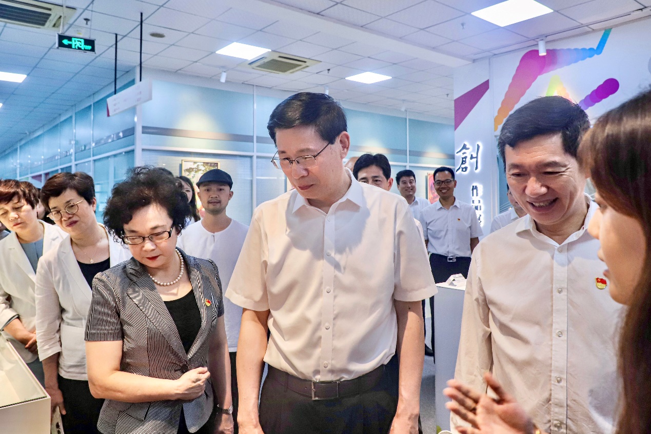 宣讲会前,许罗德一行在校领导的陪同下,参观了传媒文化创意产业园和“缅怀先烈忆峥嵘共富奋进看今朝——百名先烈画像展”。