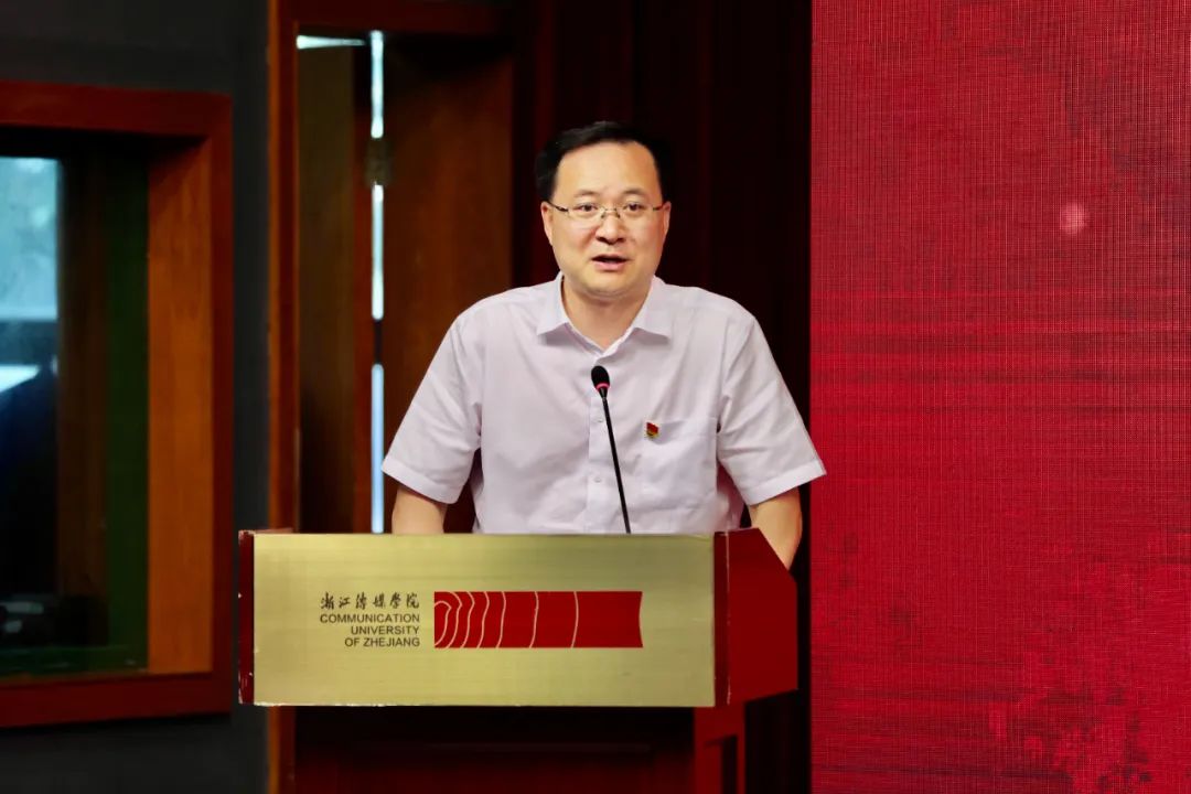 中共浙江省委宣传部副部长赵磊,中央广播电视总台浙江总站党委书记、站长张国飞,我校党委书记杨立平,团省委副书记周苏红,中央广播电视总台浙江总站党委副书记、副站长胡作华,我校党委副书记、宣传部部长、统战部部长陈永斌,省委宣传部对外交流处处长王新华,省委宣传部对外交流处副处长申屠清儿,中共浙江省委统战部港澳台处副处长沈浙,钱江晚报编委陈欣,中央广播电视总台浙江总站副总编辑高珧,中央广播电视总台浙江总站副总编辑兼温州站副站长张国亮,钱江晚报浙江新闻部主任王磊,香港特别行政区政府驻浙江联络处副主任刘颖怡出席;革命老兵代表,革命英烈家属代表,67位在浙学习、工作的香港青年,以及民盟浙江传媒学院委员会、媒体传播优化协同创新中心、动画与数字艺术学院、音乐学院、播音与主持艺术学院、文化创意与管理学院等相关单位师生代表共同参加。