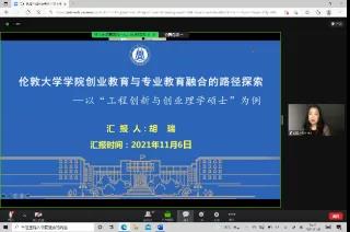 华中农业大学公共管理学院胡瑞教授以《创业教育与专业教育融合的路径探索:以伦敦大学学院为例》为题,从伦敦大学学院推进专创融合的背景、“工程创新与创业专业”专创融合的路径、启示与反思三方面发表了看法,说明了学科交叉融合与“嵌套式”课程体系等的重要性。