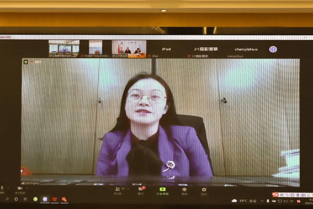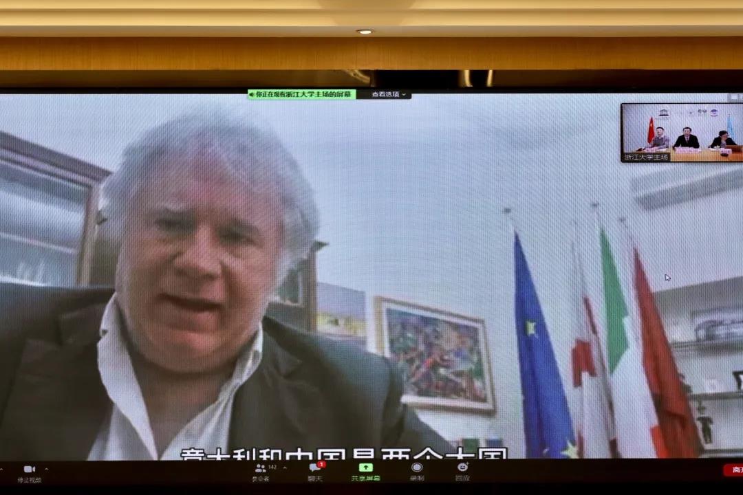 联合国教科文组织驻华代表处教育项目官员裴伯庸,意大利众议院议员马可·奥斯纳托,意大利贝加莫省索里索勒市市长斯蒂法诺·维维,联合国教科文组织浙江大学创业教育教席主持人、联合国教科文组织中国创业教育联盟主席、我校校长徐小洲,浙江省教育厅国际合作与交流处处长蓝晶晶出席,我校播音主持艺术学院、国际文化传播学院、媒体工程学院、创业学院以及国际交流合作处师生共同参会。