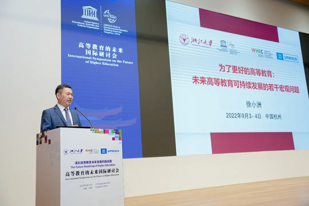 9月3日,由浙江大学主办,中国联合国教科文组织全国委员会秘书处指导,联合国教科文组织浙江大学创业教育教席、浙江大学联合国教科文组织研究中心承办,浙江大学教育学院、浙江传媒学院共同支持的“谋划高等教育未来发展的路线图——高等教育的未来国际研讨会”在浙江大学紫金港校区举行。