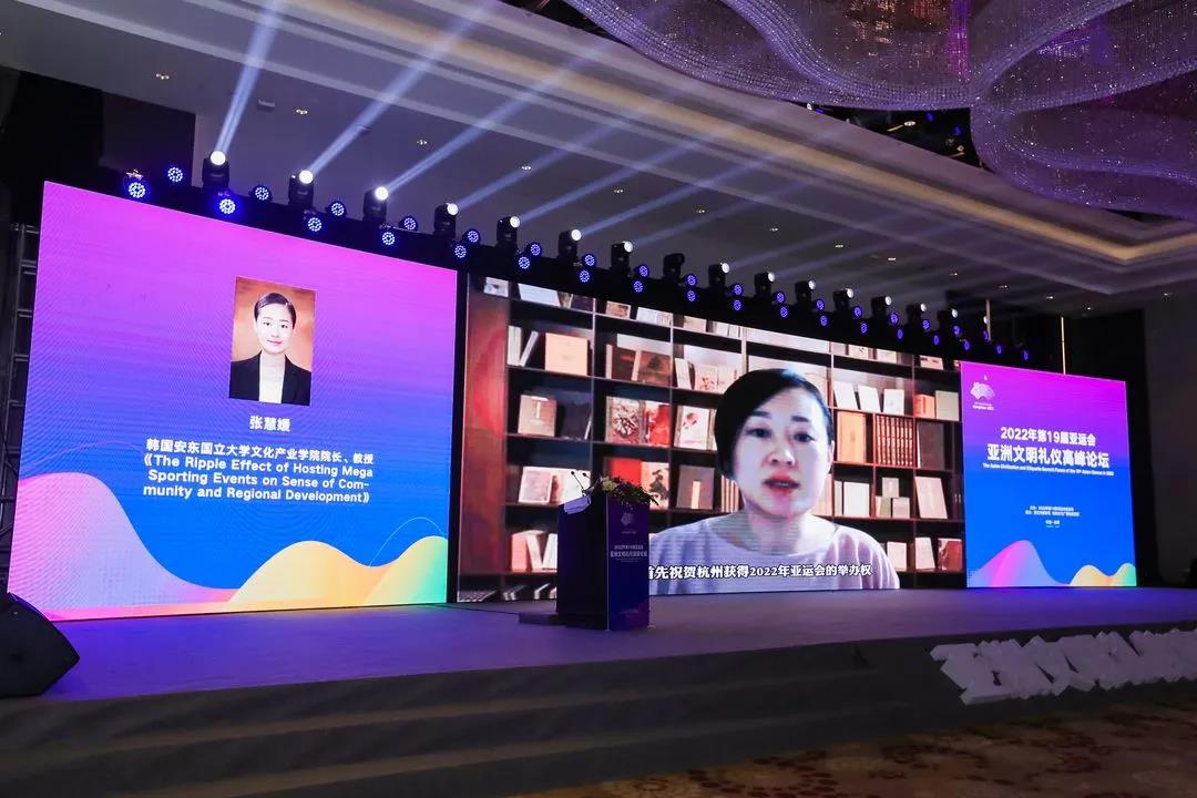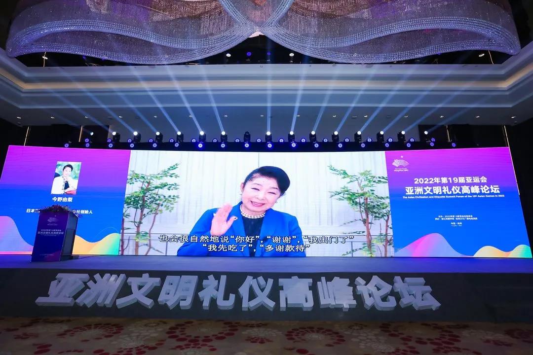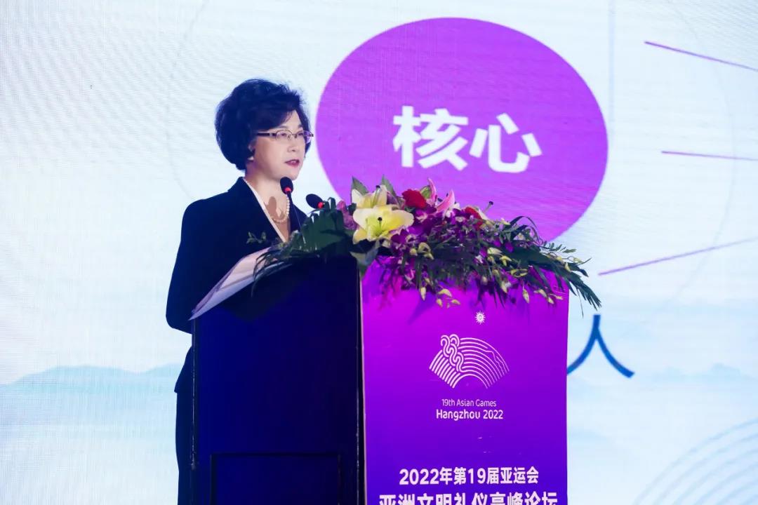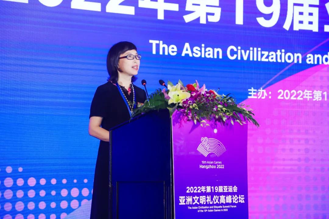 杨立平受邀作《文明礼仪与美好城市》主旨演讲,她表示,国际体育赛会,既是竞技战场,也是文明赛场;既盛开健美之花,也盛开友谊之花、文明之花、和平之花。亚运会历经风雨荣光走到今天,本身就是亚洲人民的文明财富、礼仪硕果。政界、学界、业界大咖齐聚一堂,以亚运之名,共商文明礼仪之道,必将为杭州亚运谱写精彩篇章、留存人文内涵。随后,她从四个方面作具体阐述。