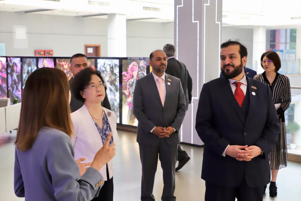 会后,穆罕默德·杰拉勒·拉伊斯社长一行参观了播音主持艺术学院、中国广播电视艺术资料研究中心、全媒体演播实验室和4K电竞综合实验室。