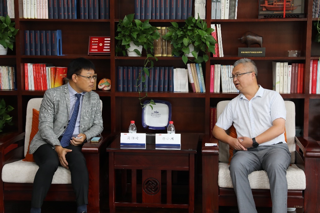 8月22日下午,台湾玄奘大学校长简绍琦访问我校,传播学院副院长、研发长邱琪瑄和两岸交流项目主任陈昭志陪同来访。校党委书记杨立平、校长徐小洲和副校长姚争分别会见了简绍琦校长一行,港澳台事务办公室和文化创意与管理学院负责人参加会谈。
