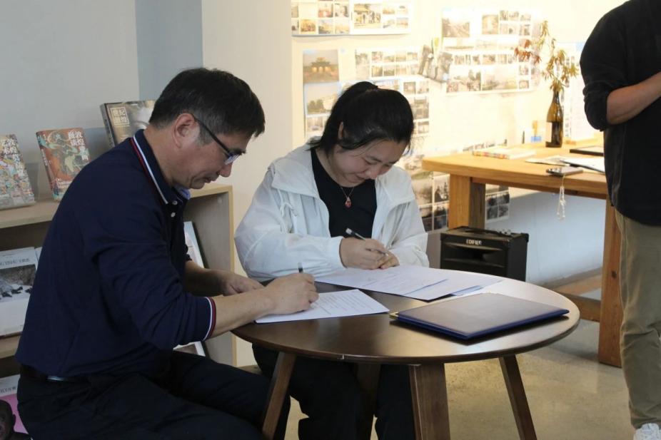 学校相关部门负责人与龙游溪口镇镇长签订留学生国情教育学习实践基地和研究生联合培养基地合作协议。