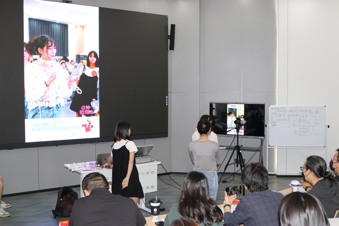 在工作坊成果展示会上,师生们以直播模拟PK秀形式全面展示了学习成果。两岸学生搭档组队、分组协作,以新颖的直播形式和娴熟的直播技巧展现了学习实践成效。经过激烈角逐,现场评出了“最佳主播奖”“最佳人气奖”等奖项。