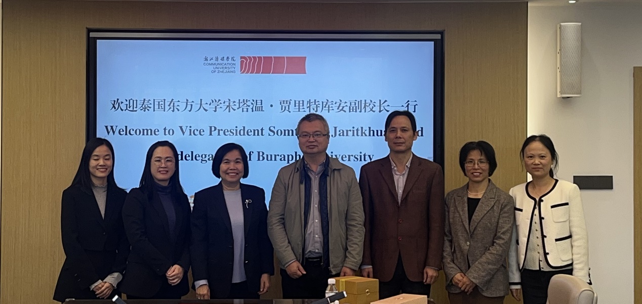 11月19日,泰国东方大学副校长宋塔温·贾里特库安一行到访我校,副校长姚争会见了来宾,学校教务处、国际交流合作处、国际教育学院和公共艺术教育部等单位负责人参加座谈会。