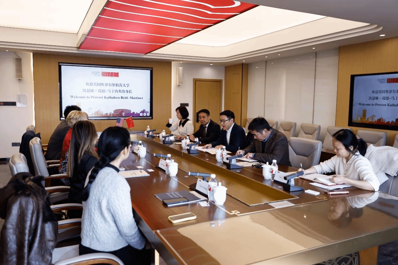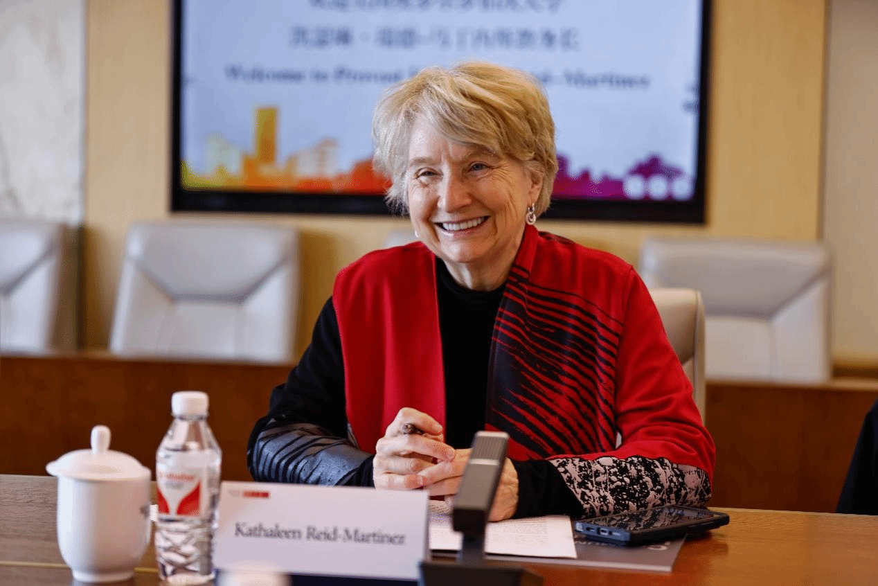 Kathaleen Reid-Martinez对学校的热情接待表示感谢,并介绍了美国奥罗尔罗伯茨大学的办学宗旨、专业课程设置、特色优势学科和人才培养等情况。她表示,两校合作前景广阔,希望未来能加强互动交流,探索开展更多实质性合作项目。
