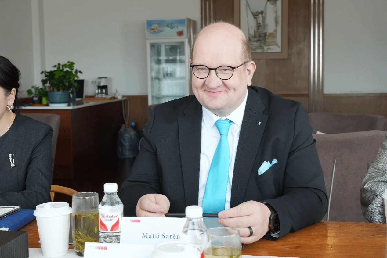 Matti Sarén校长对学校的热情接待表示感谢,并高度评价了双方已有的合作成果。他表示,芬兰卡亚尼应用科技大学与浙江传媒学院在办学理念、学科设置等方面高度契合,未来合作空间广阔。他期待双方在电竞、游戏开发设计等专业开展更加深入的合作,共同推动两校教育事业的发展。
