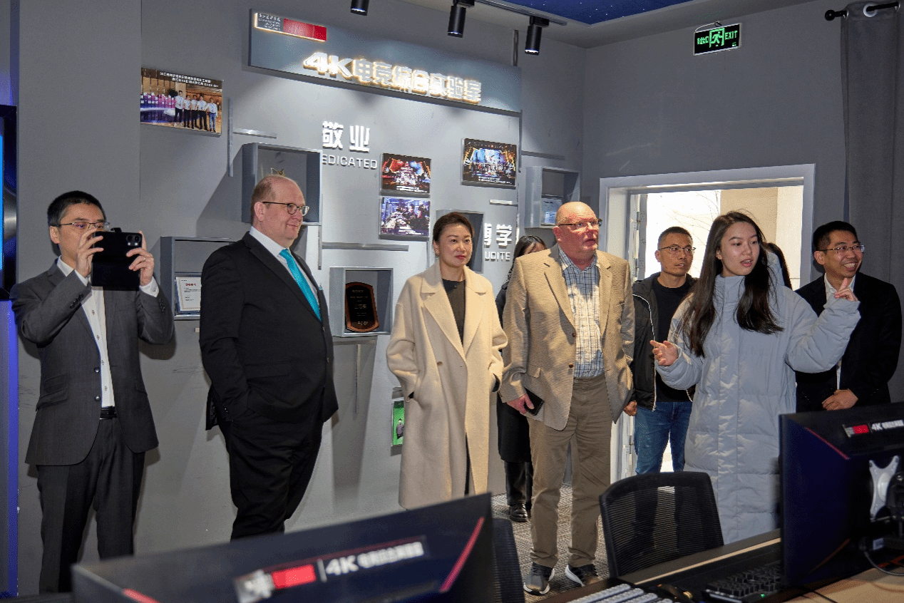 会后,芬兰卡亚尼应用科技大学代表团参观我校4K电竞综合实验室、中国广播电视艺术资料研究中心和校史馆。