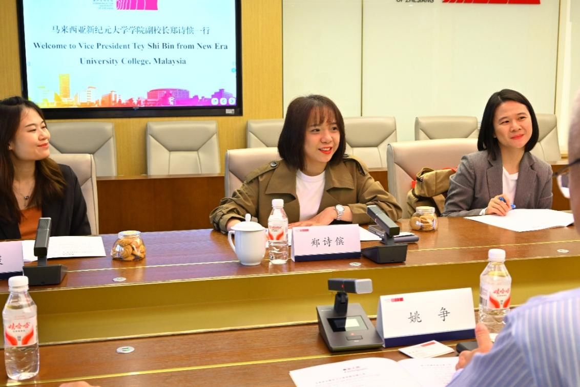 姚争代表学校对郑诗傧副校长一行的到来表示欢迎,并简要介绍了浙传的办学特色、学科优势及国际化发展成果。他表示,浙传始终秉持开放包容的办学理念,高度重视与海外高水平院校的交流合作。新纪元大学学院作为马来西亚知名高等学府,在人文社科、传媒教育等领域具有独特优势,两校合作空间广阔。他希望双方以此次会晤为契机,未来在师生互访、学术研讨、联合课程开发等方面开展务实合作,共同培养具有国际视野的高素质人才。