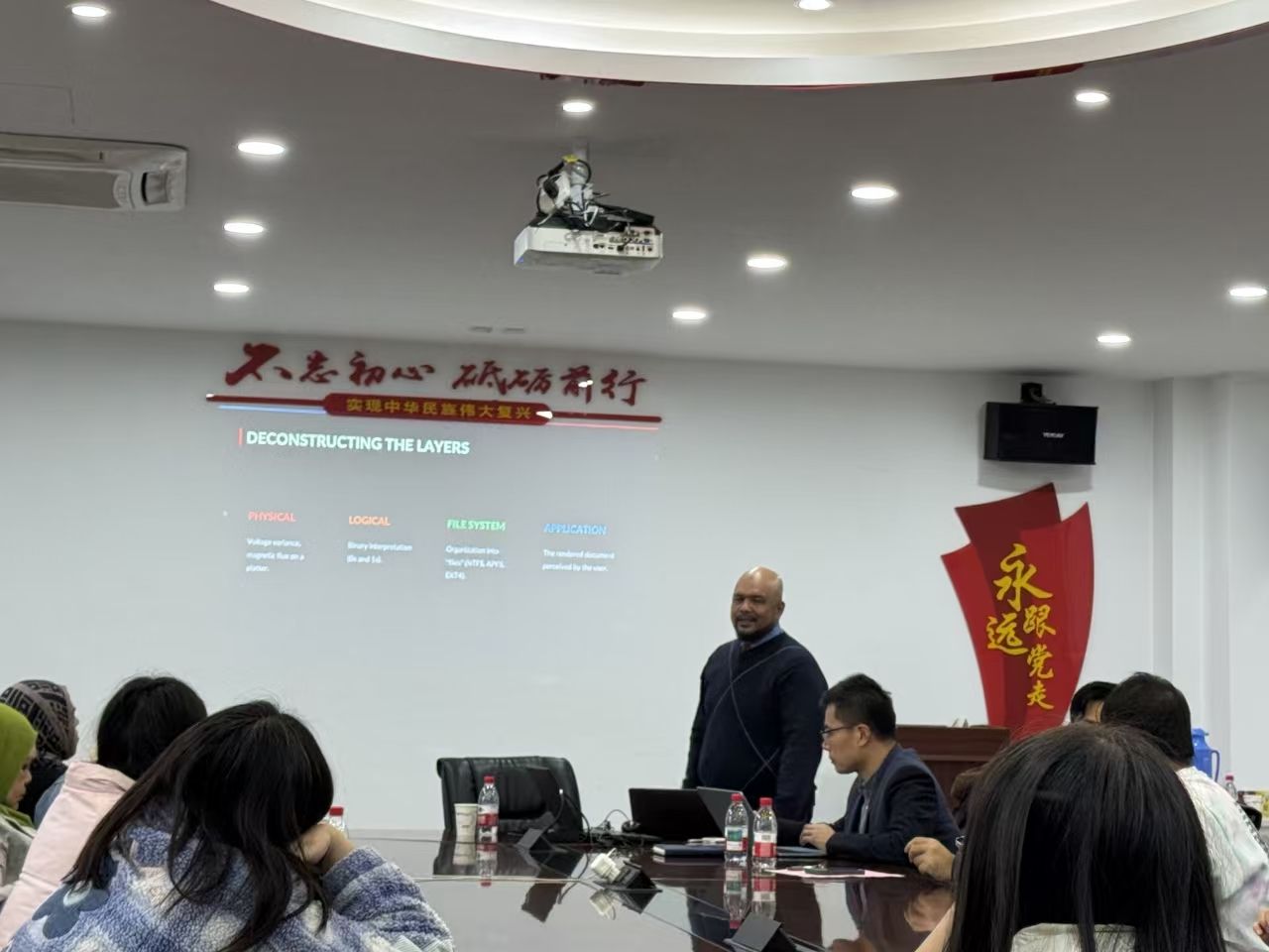 首先,《The Digital Artefact: Theory, Techniques, and the Philosophy of Electronic Evidence》报告在浙江传媒学院钱塘校区创新楼336开讲。马来亚大学计算机科学与信息技术学院教授Dr. Akmaldin Mohd Sry Abdul Wahab从像素解析、声波分析等维度,揭示数字媒体取证的技术逻辑,演示如何通过设备与软件“隐形数字足迹”区分信息真伪,为在场师生清晰呈现了数字取证的学术深度与实战价值。