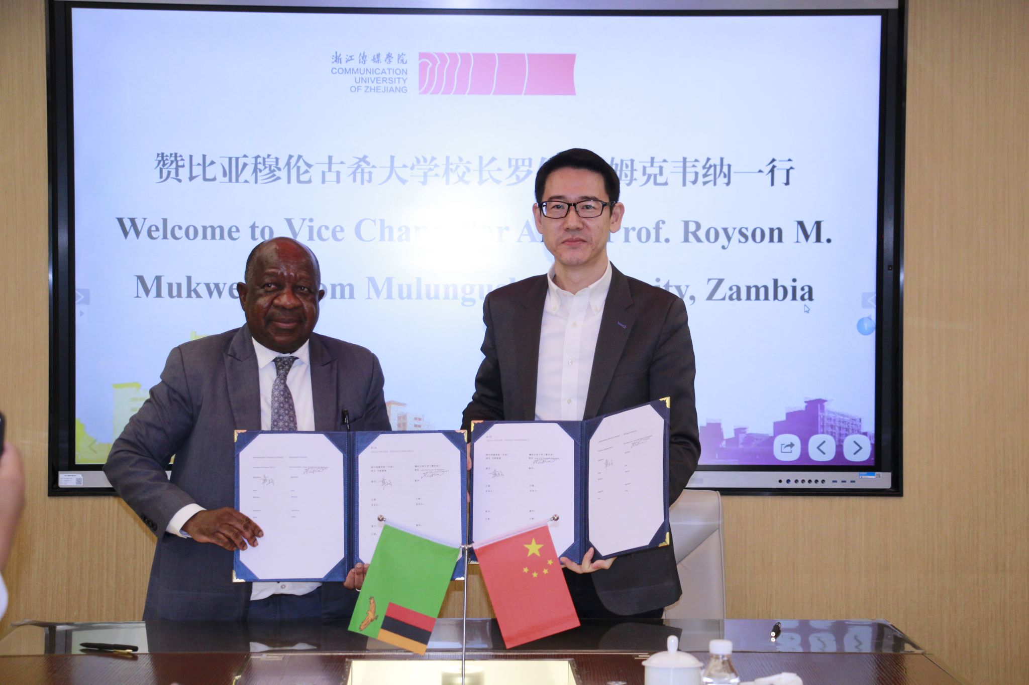 会上,韦路与罗伊斯·姆克韦纳签署了两校合作谅解备忘录、合作共建数智孔子学院意向协议书。