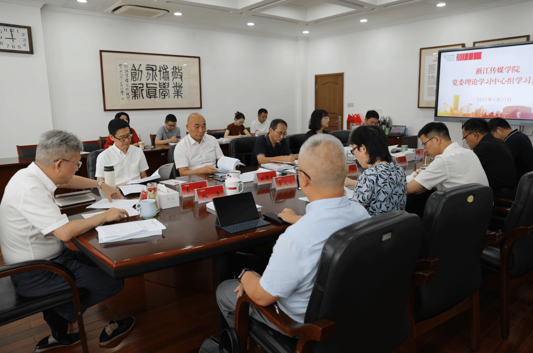 9月23日,校党委理论学习中心组召开学习会议,专题学习“习近平文化思想在浙江的溯源与实践”。校党委书记韦国潭主持会议,校党委理论学习中心组成员参加会议。